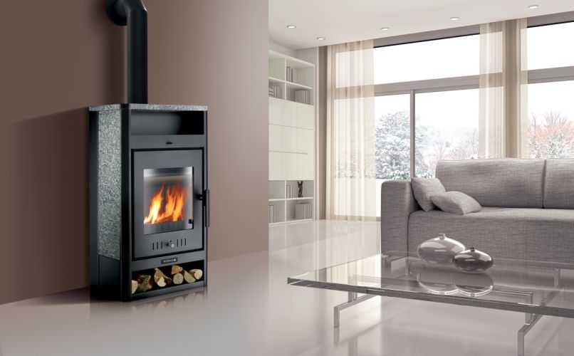 avec habillage en pierres ollaires aux excellentes propriétés d'accumulation thermique